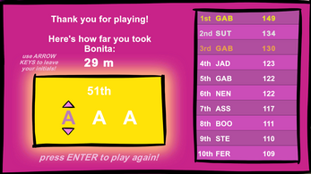 This game cannot be properly played because it requires the Bonita alternative controller. The build on the web is purely for demonstration purposes.